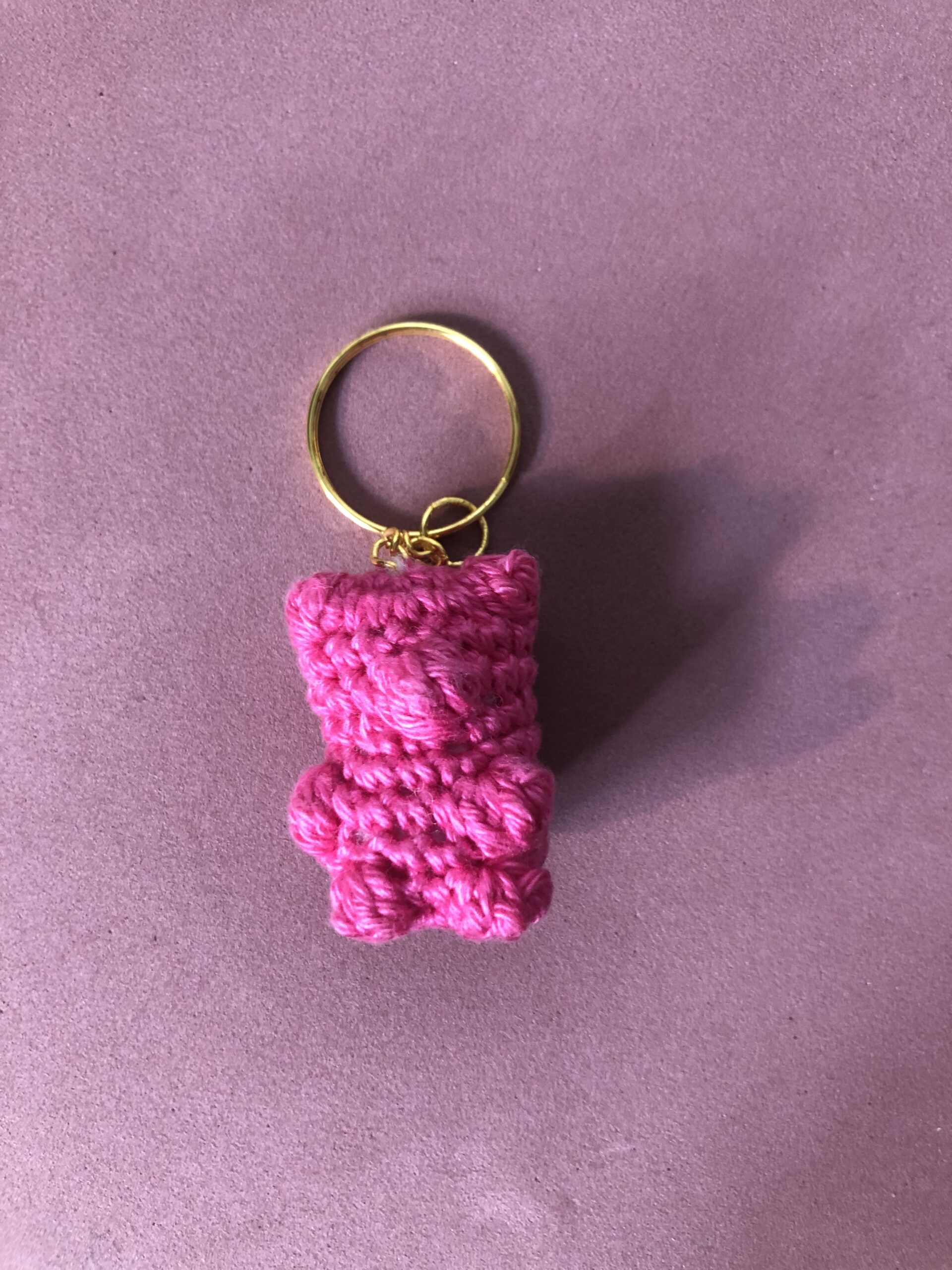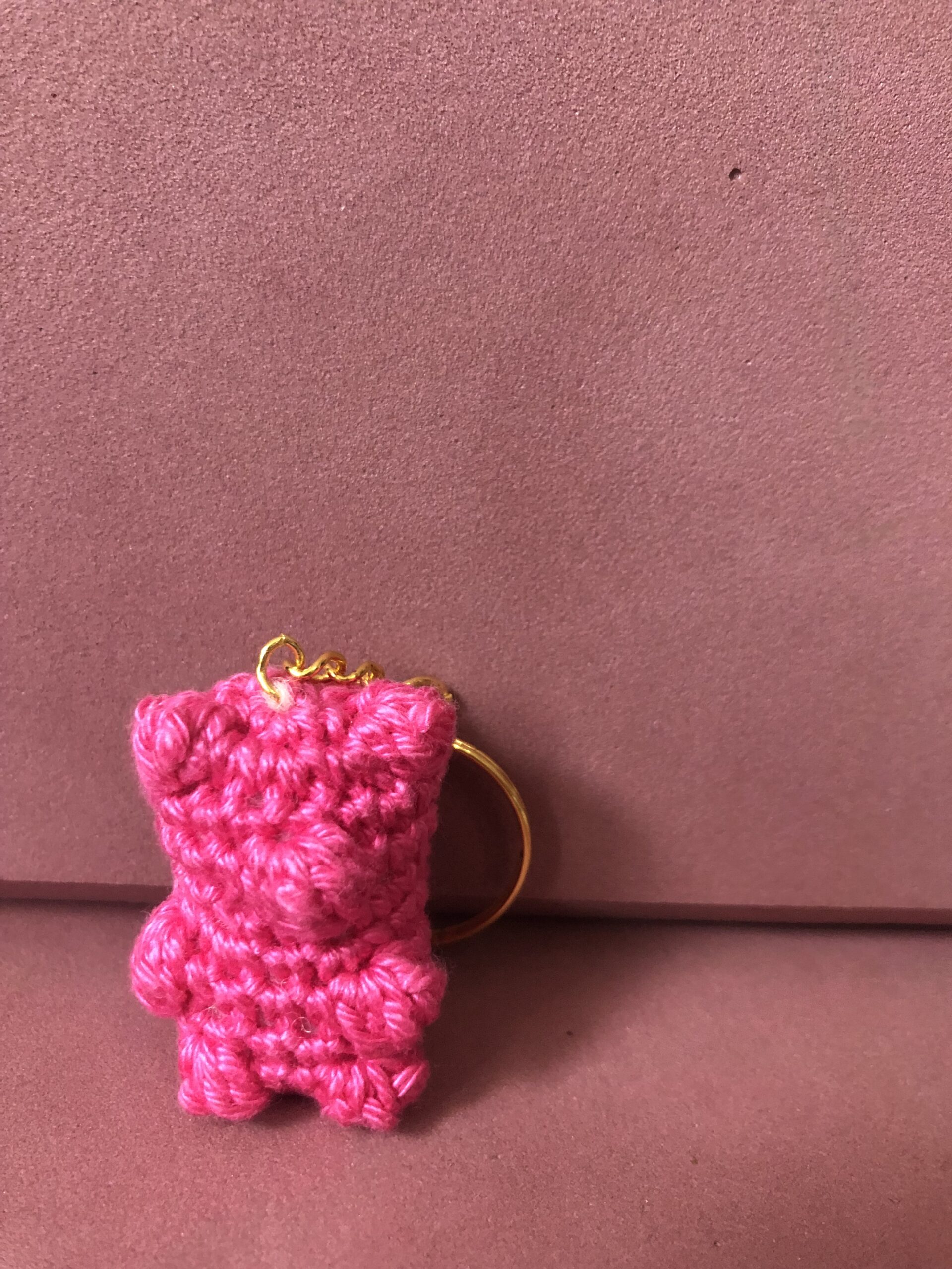 Horgolt kulcstartó, (pink) mely táskadíszként is használható. A figura kb. 3,5 cm magas. 100% mercerizált minőségi pamutfonalból készült, töltete szilikonizált poliészter golyó. Cuki ajándékötlet karácsonyra, névnapra, születésnapra egyaránt, ha valami apróság is kerülne a csomagba.