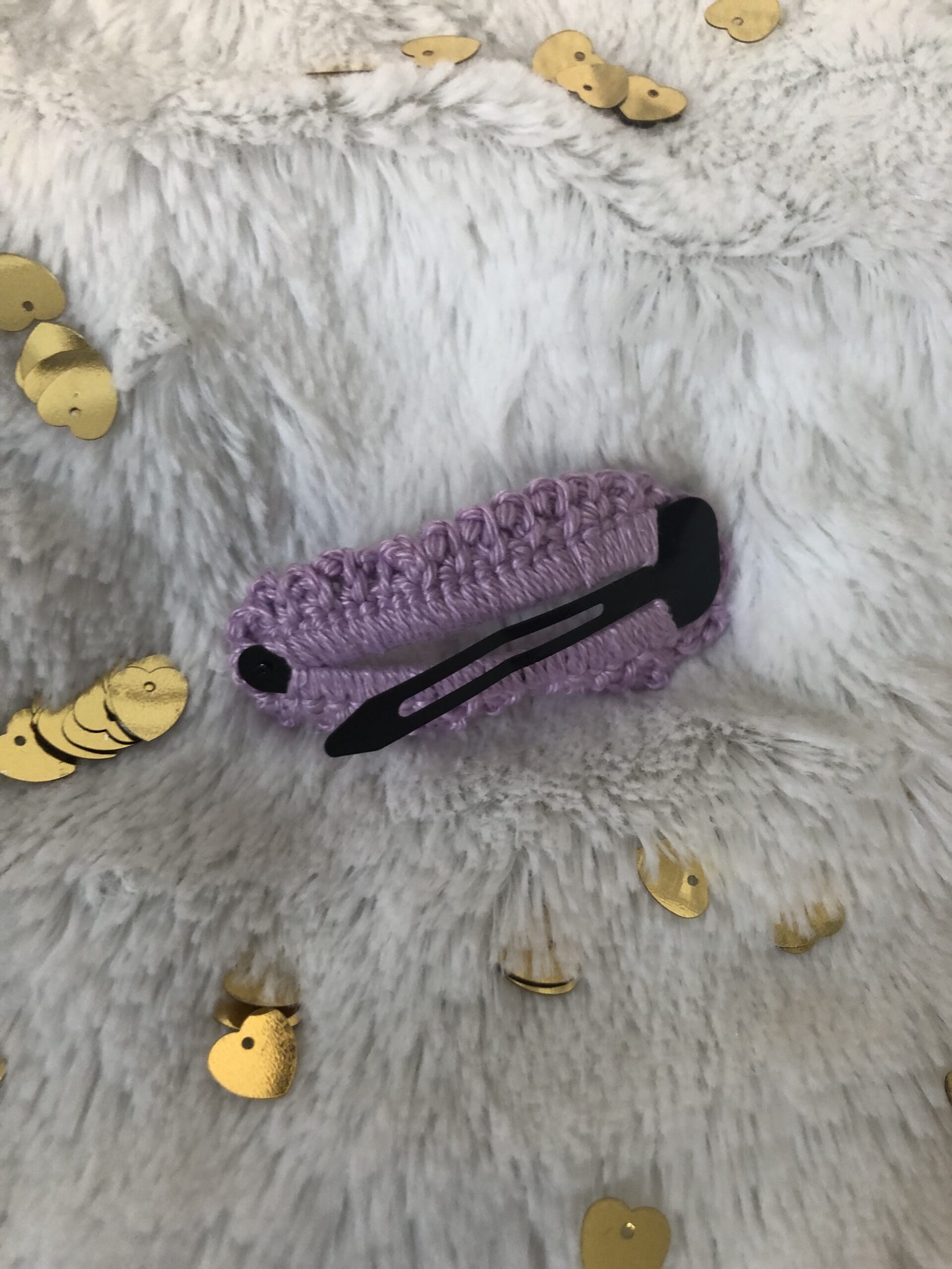 Horgolt hajcsat, körülbelül 6-6,5 cm hosszú és 3-4 cm széles. 100 % pamutfonalból készült. A fém csit-csat alap kerül körbehorgolásra. Apró, de különleges, egyedi ajándék lehet.